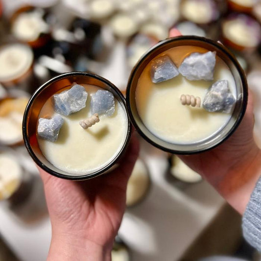 Crystal Infused Candles for Uplifting Energy | Handcrafted with Unique Crystals | J & K Lab
